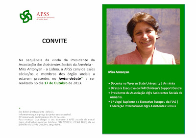 No âmbito do Plano de Atividades do Núcleo Distrital de Beja da EAPN Portugal/Rede Europeia Anti-Pobreza para o ano de 2013 e no que concerne ao capítulo denominado Comemorações de Dias Internacionais; vimos pela presente associar-nos às Comemorações do Dia Mundial do Serviço Social com a realização de um almoço/conferência com Alfredo Henriques e Figueiredo Santos de acordo com a informação que segue em anexo.